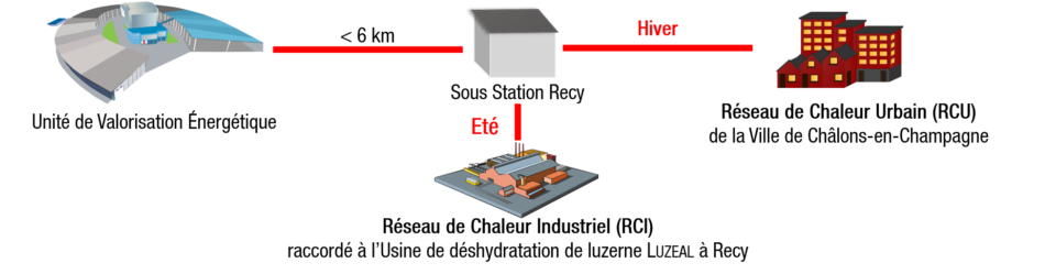 Ce réseau fournira en chaleur la Ville de Châlons-en-Champagne et le site industriel de Luzéal.