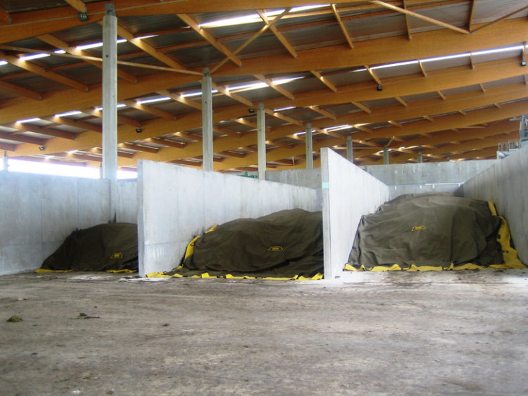 Après humidification, les biodéchets sont placés pendant 1,5 mois dans des box bâchés si besoin afin qu’ils fermentent.