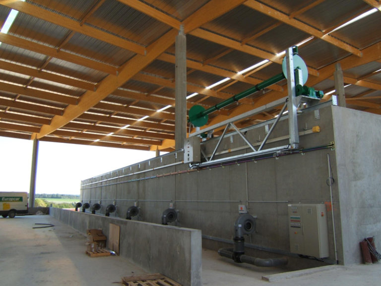 Une sonde placée dans les box directement reliée à la salle de quart permet de contrôler la dégradation des biodéchets. On injecte de l’air (fermentation aérobie) si besoin pour accélérer le processus.