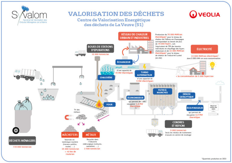 Depuis sa mise en service en janvier 2006, l’Unité de Valorisation Énergétique (UVE) de La Veuve produit de l’électricité à partir de l’énergie issue de l’incinération des déchets non recyclables, via un turbo-alternateur à condensation (GTA).
